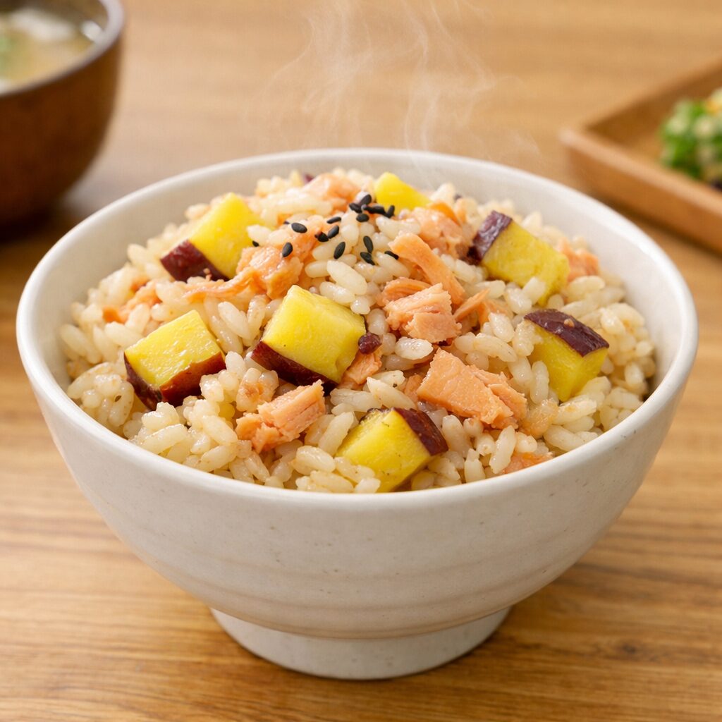 ※このページは、材料・分量・作り方を上から順に見るだけで「鮭×さつまいも」の炊き込みご飯を再現できるように整理しています。