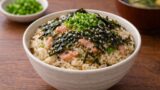 - 炊けたら、玉ねぎをしゃもじで軽くほぐし、器に盛って刻んだ大葉をのせて完成。
